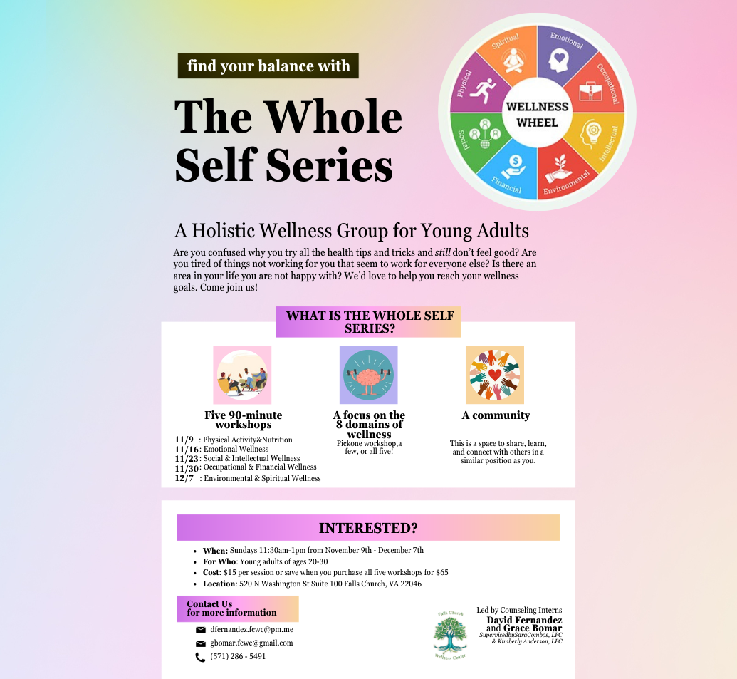 Led by: Graduate counseling interns, Sam Robinson and Grace Bomar